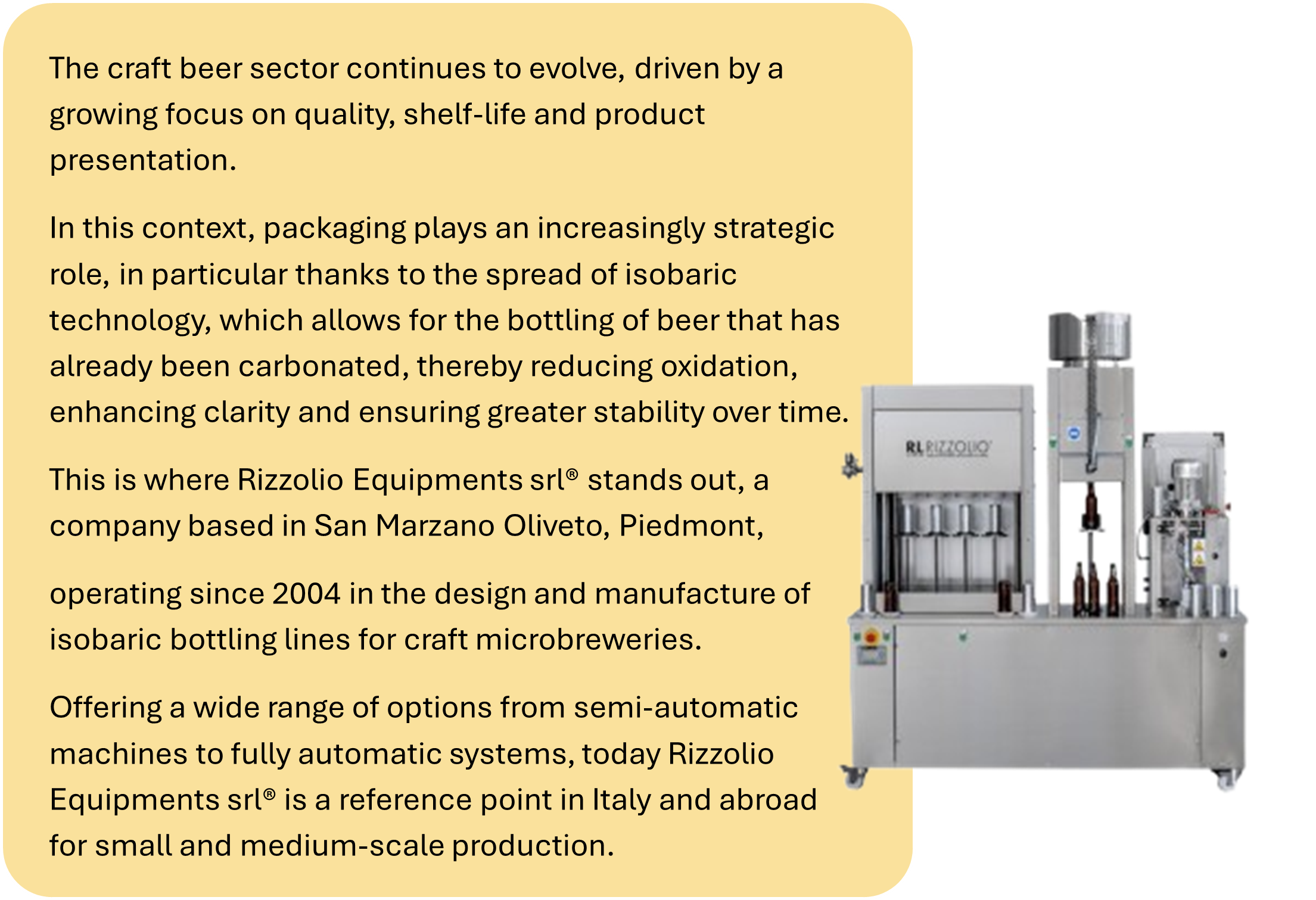 Rizzolio is a leading Italian company in the production of machinery for bottling and canning beverages, with a particular focus on craft beer producers. Luca Rizzolio, owner of the company, illustrates the offer to breweries for the optimisation of the filling and packaging phases, emphasising quality, simplicity and impeccable customer service.